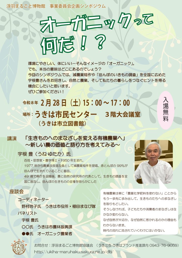 今回のシンポジウムでは、減農薬稲作や「田んぼのいきもの調査」を全国に広めた宇根豊さんをお招きし、自然と農業、そして私たちの暮らしをつなぐヒントを得る機会にしたいと思います。